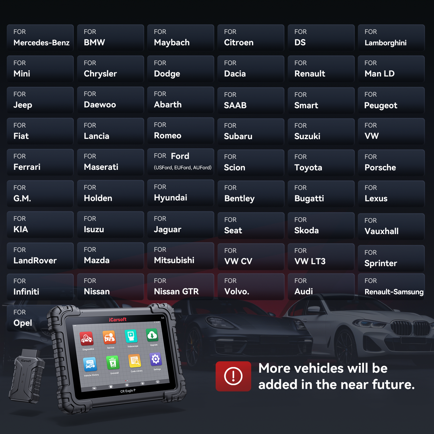 Products tutorial, videos, Q&A and coverage list are available on iCarsoft official website.